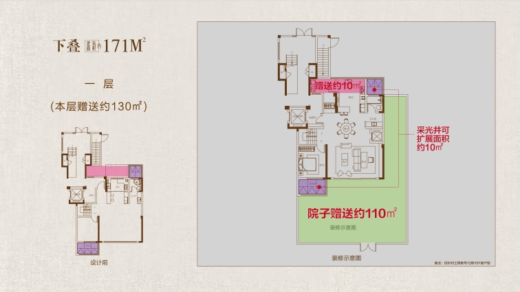 下疊戶型鑒賞: 大空間:高附贈(zèng)率成就奢闊質(zhì)感 約5.5米地下室:地下一層可隔成雙層空間,打造影音室、健身房或酒窖等功能,實(shí)現(xiàn)“買一層得兩層”的空間拓展。 客餐廳挑空:贈(zèng)送約63m²空間,可改造為套房或親子活動(dòng)區(qū),立體延伸多重生活場(chǎng)域。 大寬景:有天有地勾勒環(huán)幕視野 庭院與拓展雙加持:首層拓展空間,可規(guī)劃入戶玄關(guān)或休閑區(qū)。最大約80㎡花園贈(zèng)送,形成“室內(nèi)活動(dòng)區(qū)+戶外花園”的社交場(chǎng)景閉環(huán)。 開間尺度與視野:南向三開間設(shè)計(jì),約6.5米橫廳連接室外花園,引景入室,實(shí)現(xiàn)“庭院-客廳-餐廳”的通透動(dòng)線。 大格局:縱向分層突破平面想象 上下分層設(shè)計(jì):疊加產(chǎn)品功能分層,安靜不受打擾;地下室、一樓作為活動(dòng)區(qū),滿足親友宴請(qǐng)、休閑娛樂等功能應(yīng)用;二樓作為獨(dú)立起居空間,形成“下層社交、上層宜居”的分層生活。