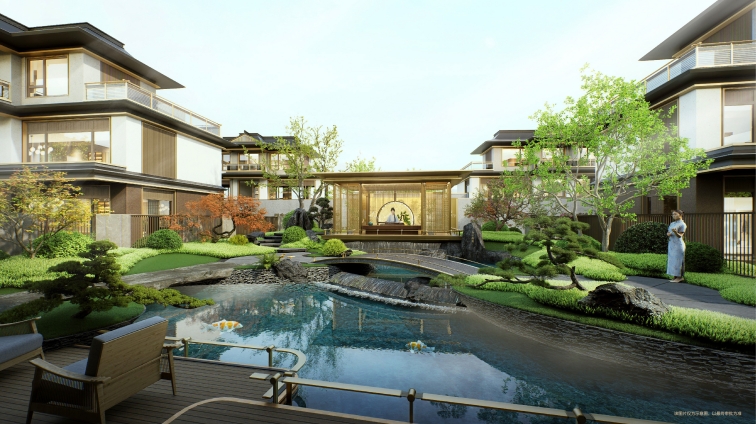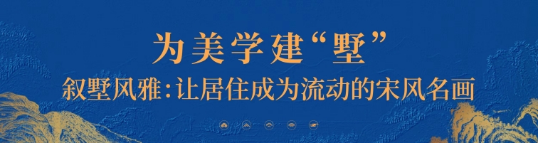 在建筑園林打造上,延續(xù)“山河”系列一脈相承的宋式美學(xué)基因,萃取《營造法式》中經(jīng)典建筑語匯,以“落客、登門、入境、入畫、人心”五進禮序空間,層層遞進,演繹歸家儀式感。同時遵循宋代園林“堆山、疊石、理水”的造園古法,將建筑輪廓、錯落灌木、蜿蜒小橋與靈動流水相融,構(gòu)建高、中、低三重立體景深層次。日常動線仿若穿行于流動的宋風(fēng)長卷,意境悠遠,心歸畫中。
